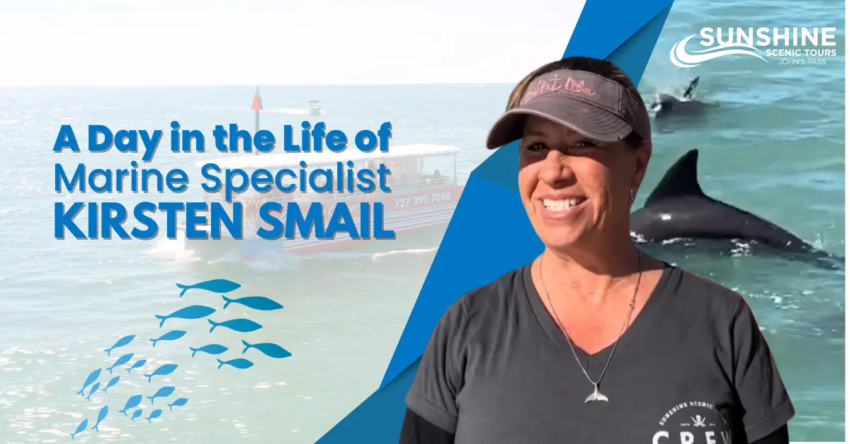 Kirsten Smail, Marine Specialist aboard the Dolphin Quest at John’s Pass in Madeira Beach, is beyond passionate about dolphins. Anyone who has taken a tour with Kirsten of Boca Ciega Bay would tell you that her intimate knowledge of all things aquatic is what sets the Dolphin Quest apart. While her expertise is wide and varied, her particular interest lies in Boca Ciega Bay’s population of Atlantic Bottlenose Dolphins.