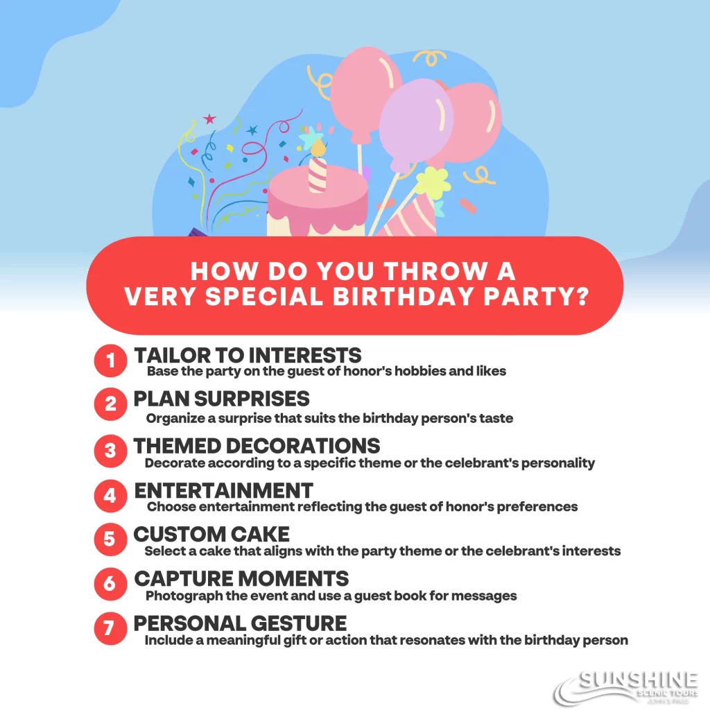 When planning a very special birthday party, the key is to make it personal. Take the time to think about what the guest of honor enjoys and tailor the party to their interests. Do they have a favorite hobby, movie, or sport? Incorporate elements that reflect their passions. By doing this, you’re showing them that their happiness is the top priority.