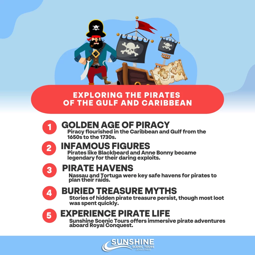 Come along as we explore the rich history of piracy in the Gulf and the Caribbean, delving into the lives of the pirates who roamed these seas and how their legends continue to captivate our imaginations today. And if you’re looking to relive the golden age of piracy, the Pirate Ship Royal Conquest, operated by Sunshine Scenic Tours, offers a fun and immersive way to experience the thrill of a pirate’s life on the waters of Madeira Beach, Florida.
