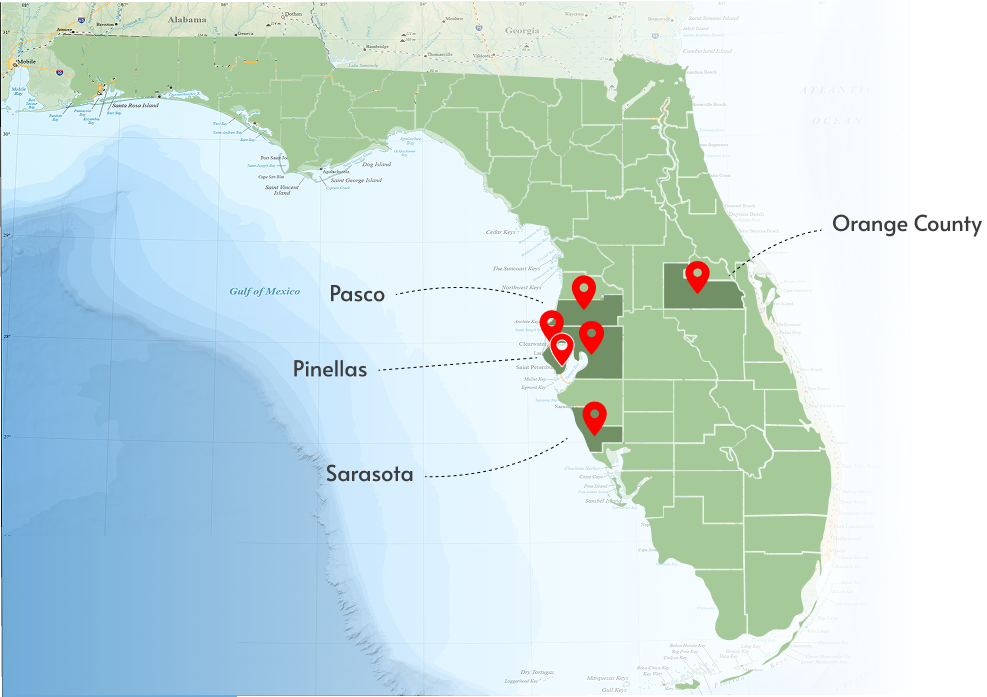 We proudly serve the Tampa Bay area, including Clearwater, St. Petersburg, Brandon, Sarasota, and all of Pinellas and Pasco Counties. We also cover the Orlando area, including all of Orange County.